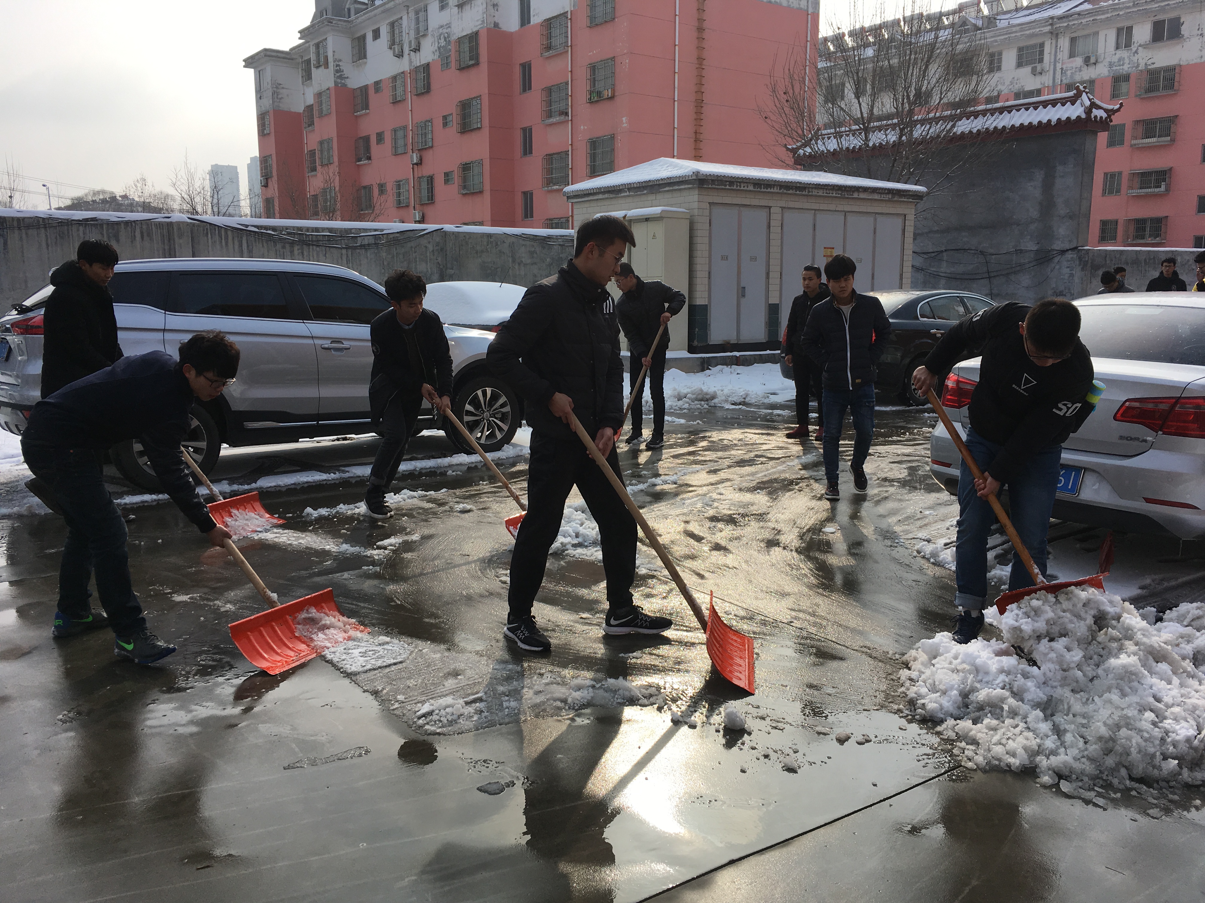 除雪过程中,老师和同学们的手和脸都冻得通红,然而,这一切丝毫没有影响大家的热情和工作效率,师生们发扬了吃苦耐劳、顽强拼搏的精神。经过几个小时的奋战,在师生们的共同努力下,学院卫生区的积雪全部清扫干净,确保了校园道路的畅通。扫雪任务圆满完成后,虽然室外气温依然很低,但是同学们劳动的热情和团结的力量让这个冬日变得格外温暖。
