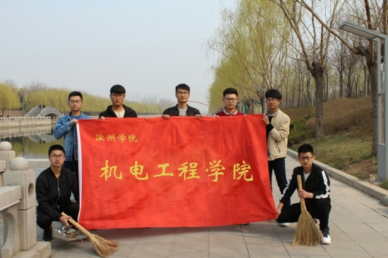 3月18日上午10:00,机电工程学院助学部全体干事到滨州市新立河公园进行志愿清扫活动。