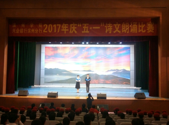 4月25日下午2点,机电工程学院于学苑会堂参加了滨州学院庆“五一”诗文朗诵比赛,我院纪建茂、刘晓璐老师带着作品《光的赞歌》参加了此次比赛,我院部分老师以及50位同学到场观看。