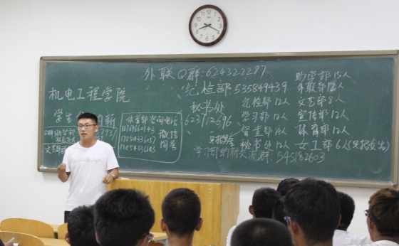 9月14日晚7点半,我学院在八教举行了学生会的纳新宣传活动,我院现任学生会全体干事入班向2017级新生进行宣传。