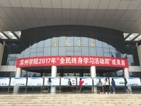 10月14日上午9点,我院于学院会堂门口参加了滨州学院举办的2017年“全民终身学习活动周”成果展。时宝国老师和宋立军老师到场指导,2017级全体同学参加。