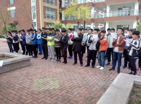 10月17日下午2点,我院于9教西侧广场进行了国际歌合唱训练活动,本次活动由文艺部组织开展,并邀请艺术学院同学到场指导,我院2017级70余名学生参加训练。