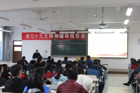 会议邀请马克思主义学院王勇军博士作了题为《走进中国特色社会主义新时代——中国共产党十九大精神》的专题报告。王勇军博士围绕十九大报告的主题、框架、创新对十九大精神进行了全面阐释和系统讲解。王勇军博士在报告中指出,学习贯彻十九大精神,重点是要牢牢把握和深刻理解党的十九大报告的鲜明主题,深刻领会习近平新时代中国特色社会主义思想的历史地位和丰富内涵,深刻认识五年来党和国家取得的历史性成就,深刻认识中国特色社会主义进入新时代和新时代党的历史使命,深刻理解我国社会主要矛盾的变化,深刻理解实现“两个一百年”奋斗目标的战略部署,深刻认识坚定不移推进全面从严治党的重大意义,进一步坚定“四个自信”,进一步增强“四个意识”,努力推进新时代中国特色社会主义伟大事业新发展。