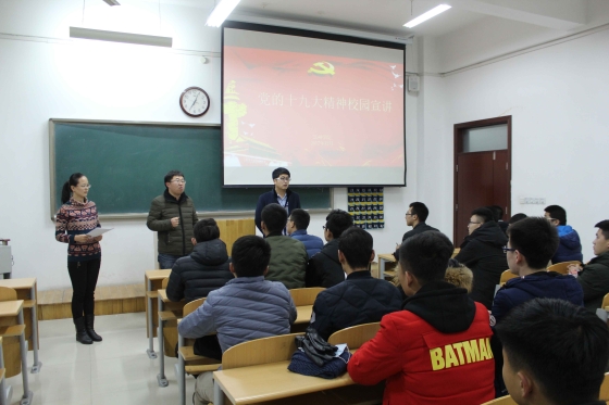 12月29日晚7点,我院于8教114开展学生党支部党的十九大报告会,本次报告会由靳雪银老师主讲,辅导员宋立军、纪建茂老师和所有学生党支部成员参加。