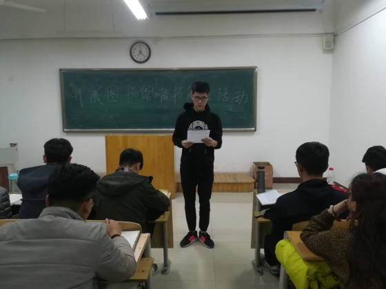3月18日晚上7点,机电一体化技术一班、二班于九教406举办开展图书馆借书阅览活动,一班、二班全体同学参加,此次活动由我班班长组织开展,17级辅导员宋立军老师主讲。