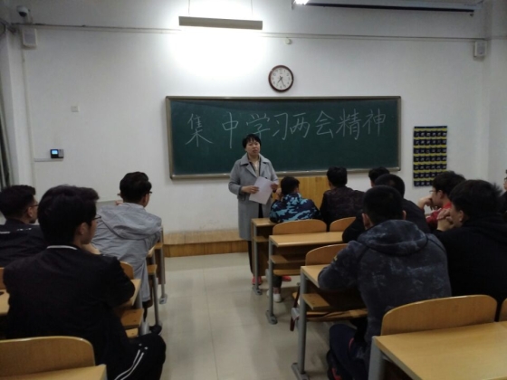 3月25日晚7点,我院各班在班会教室召开“集中学习两会精神”主题班会,本次班会由各班班主任及班长主持召开,全体同学参加。