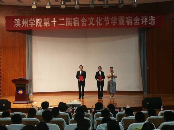 5月14日晚7点半,我院于学苑会堂参加滨州学院第十二届宿舍文化节学霸宿舍评选活动。我院11号楼4楼活动室参赛,靳雪银老师到场。