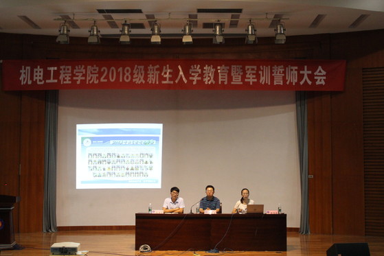 9月10日晚7点,学院在学院会堂第二报告厅召开2018级新生入学教育暨军训誓师大会,我院党总支书记张永胜,院长李宏伟,党总支副书记王丕琢,副院长黄爱芹,学生科科长宋立军,辅导员靳雪银、纪建茂以及学院的全体教师出席此次大会,2018级全体同学参加,16级17级部分学生干部负责会场秩序。