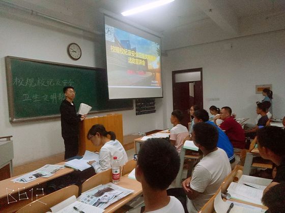 为加强新生的纪律教育,提高他们的综合素质,9月27日晚上7点半我院于8教104教室内举办了校规校纪及安全卫生文明的宣讲会,本次宣讲会由秘书处组织开展,2018级部分学生到场参加。