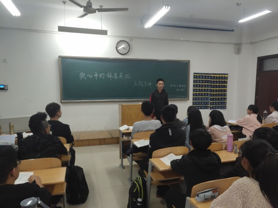 在此次活动中,尹贻光同学首先对同学们讲解了此次活动的意义,同时以自身为例,向同学们讲述了自己心目中的体育英雄,他的体育英雄是足球明星c罗,c罗最让尹贻光同学为之着迷的是c罗出众的控球能力和突破能力,同时他身上的体育精神也不断的影响着尹贻光同学,所以尹贻光同学参加了足球队,希望能向他的体育英雄靠近。在尹贻光同学讲述完毕后。新生们被尹贻光的讲述所带动,纷纷举手上台,向大家讲述着自己心目中的体育英雄,在同学们的宣讲中,有科比,詹姆斯,梅西等等这些引人注目的明星,也有一些名不见经传的运动员,他们身上的体育精神都是非常崇高的,在大家的宣讲中,同学们的体育精神在无声无息中得到了很大的提升。