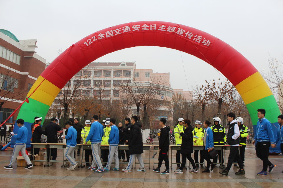 活动开始之前,同学们自觉在二餐广场站队等候滨州市滨城区交警大队的到来。随后由滨州市交警大队队员为同学们宣读文明出行倡议书倡议师生从我做起,从细节做起,从现在做起,自觉遵守交通法律法规,养成良好文明出行习惯,共创文明礼让、安全有序,畅通和谐的道路交通环境。通过摆放交通安全知识展板,悬挂交通安全宣传条幅,发放宣传折页等以图文并茂的形式进一步警示广大师生同学,希望大家牢记安全的重要性,从自身做起,安全、文明骑行。向同学们宣传交通安全知识之后,同学们有组织的排队上前领取交通安全的知识宣传折页,部分同学就一些不懂的问题进行了咨询,相关人员对同学们的问题进行了详细讲解,宣传活动结束之后,同学们有秩序的离开二餐广场。