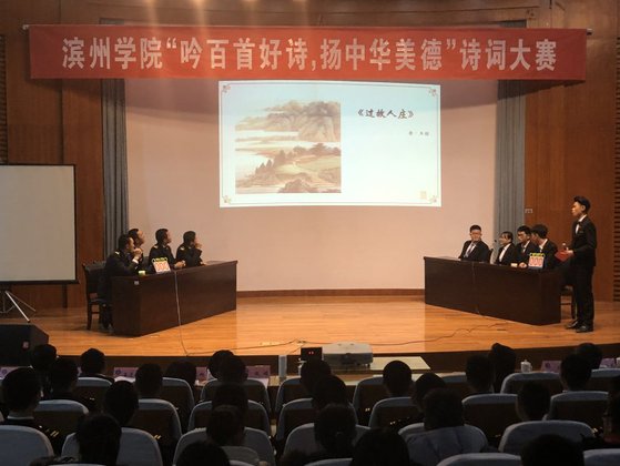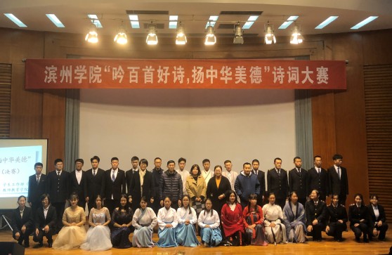为弘扬中华民族优秀传统文化,提高学生的人文素质和道德情操,推动校园文化建设。12月13日晚七点,学院于五百人礼堂参加滨州学院“吟百首好诗,扬中华美德”诗词大赛决赛。我院18级温子寒等4名同学参赛,18级部分同学到场观看。