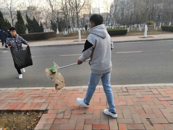 下午2点20参加活动的学生在九教广场集合,以班级为单位完成签到,接着由相关负责人讲解活动注意事项,“活动中注意安全,禁止嬉戏打闹,应注意对花草树木的爱护,不要践踏花草树木,爱护一草一木,捡拾的垃圾应以生活垃圾为主”。然后各个班级领取卫生工具和垃圾袋。合影留念后前往指定区域进行打扫。活动过程中同学们热情高涨,分工明确,相互配合。他们或是用扫帚扫地, 或是用卫生夹夹起路边的垃圾,花丛里、草坪上、教学楼前、道路上都有他们劳动的身影。他们良好的精神风貌为寒冷的冬天增添了一份温暖。转眼间,林间小道、草坪深处均已不见塑料袋、瓜皮纸屑的踪影。虽然他们每个人手持工具不同,但彼此之间协调合作,各组之间也相互帮忙,在阳光下一丝不苟地清扫着校园,为校园环境做了一次彻底的清洁。