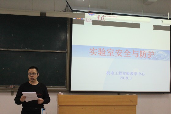 按照机电工程学院关于“强学习、提站位、深反思、促整改”专题教育和专项排查活动安排,3月1日晚7:00,机电工程学院实验教学中心组织2017级全体学生、实验室管理人员及实验指导教师在工科楼2-112举行新学期《实验室安全与防护》的教育培训活动。中心负责人季德生老师结合全国学校安全工作电视电话会议精神、实验室安全事故警示案例、实验室事故原因与类型、实验室安全常识、机电工程实验教学中心安全措施、滨州学院实验室安全守则等六个方面进行了讲解。
