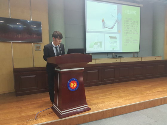 答辩会采用PPT汇报的方式,答辩的顺序抽签决定。每个项目通过项目陈述与老师提问进行答辩。每位老师对申报项目进行了严格的审查,针对每个项目申报书中存在的不足予以批评指正。我院项目为“多功能楼梯护栏清洁机”,项目负责人借助精心准备的PPT、制作精良的原理模型图向在场学生和评委全面地介绍了选定项目的背景、项目的核心研究内容及项目预期情况。评委老师根据项目的答辩情况,提出了针对性的问题并给出了专业性的指导意见,参与同学认真听取了评委老师的意见并且进行改正。