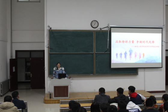与榜样同行,做时代先锋!3月11日晚七点,机电工程学院于8教305隆重举办“汲取榜样力量,争做时代先锋”宣讲会,本次宣讲会由辅导员靳雪银老师主持,18级全体学生参加此次宣讲会。