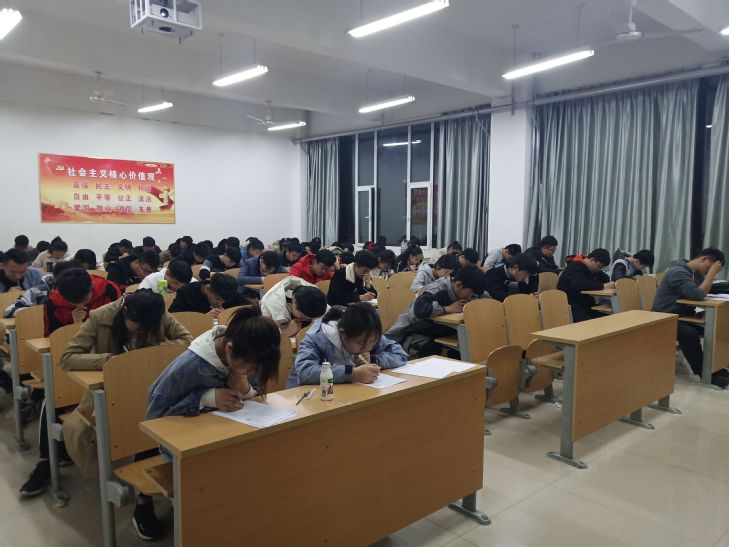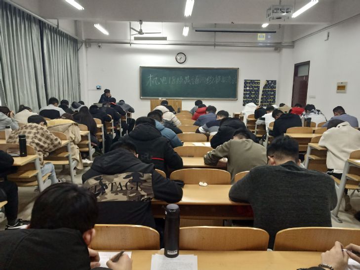 考试开始前,学习部成员分发试卷并对考试注意事项进行强调,确保同学们了解考场纪律。本次考试时间分配和四级正式考试时间安排一样,首先进行的是英语作文撰写与英语听力测试,在英语听力期间,八号教学楼所有教室保持肃静,力求听力效果达到最佳。听力结束后,学习部成员将答题纸一卷收回。第二环节进行的阅读与翻译共计七十分钟,此环节学习部干事们流动巡查,保证考场纪律。同学们诚信考试,埋头答题,奋笔疾书,体现了机电学子的优良作风。晚上9点考试正式结束,所有学生停止作答并坐在原座,待收完答题纸二卷两分钟后,学习部组织学生有序离场。至此,本次英语四级模拟考试圆满结束。