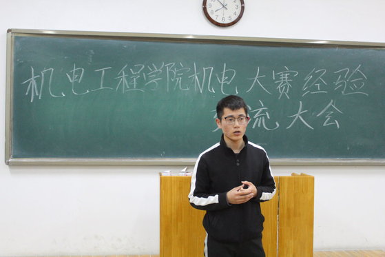 为了进一步做好机电大赛的备赛工作,帮助参加机电大赛的同学日后少走弯路,更好地成长与成才,利于规划备赛过程。4月3日晚7点,机电工程学院于八教110举办机电工程学院举办机电大赛经验交流大会。此次会议由牛得学老师主持开展,2017级、2018级参赛同学参加。