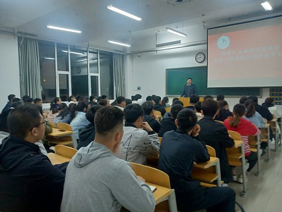 首先,党总支副书记王丕琢老师强调了本次运动会的注意事项,鼓励所有参与运动会的同学团结起来,发扬最好的机电精神。着重强调“安全第一,比赛第二”的原则,提醒运动员们要注意保护自己,在赛场上避免受伤。也要运动员应保持高度的责任心,尽全力完成此次任务,为学院争光。随后,宋立军老师为大家详细介绍了学院历年战绩以及今年团队情况和目标,他表示各部门将积极配合,提升运动员的训练效率,为迎接运动会作好充分准备,希望运动员们充分发挥自身实力,并预祝运动员们能在本届运动会上再创佳绩。最后,靳雪银老师就自身参加运动会的经验,运动会比赛规则以及注意事项进行了说明,让运动员们更了解比赛,更好的发挥自己的优势,靳雪银老师期望运动员们能保持昂扬的斗志和顽强拼搏的精神,全力以赴的参加比赛。