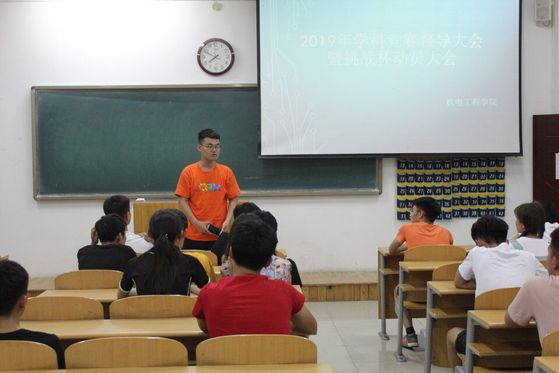 为了督促和指导同学们积极踊跃参加学科竞赛,并下发2019年“挑战杯”竞赛开始报名的通知。我院于5月25日晚7点半在8教110教室召开了学科竞赛督导会议。此次会议由人工智能实验室负责人张义壮及机电产品创新实验室负责人崔书彬主讲,每个项目组的全体成员参加此次会议。