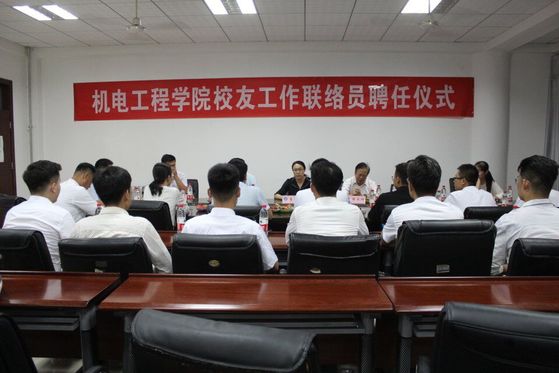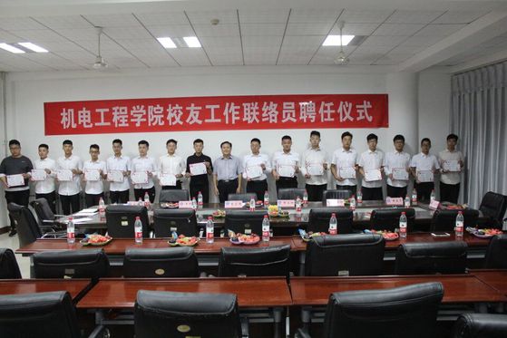 然后由李宏伟院长致辞,她强调了的校友工作联络员的重要性,表达了母校对校友工作联络员的重视;随后宋立军老师介绍了校友会的基本情况及校友工作联络员工作职责,他表示校友工作联络员要具有较强的责任心和组织协调能力,热爱母校,热心校友工作。颁发聘任仪式开始,首先由校友办公室主任尚明伟宣读了机电工程学院关于聘马昌武等20名同学为我校校友工作联络员的决定;随后,20名校友工作联络员依次上台,由滨州学院合作发展处副处长平金明为他们颁发聘书,并由机电工程学院党总支书记张永胜为他们颁发了纪念品。然后由校友工作联络员代表李明飞发言,他感谢母校的哺育和栽培,表示将认真履行校友联络员职责,密切母校和校友的联系,在信息收集、沟通联络、参与校友活动等方面发挥桥梁纽带作用,为母校发展贡献力量。最后,王丕琢副书记作了总结并宣布聘任仪式结束。