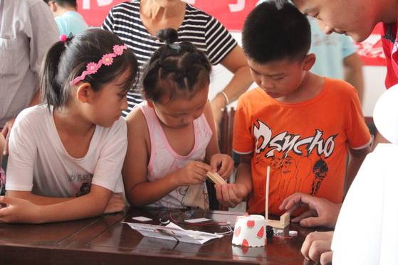 为加强科技创新教育,尤其是青少年的科技素质。“美丽乡村,科教e站”志愿服务队与7月19日上午在张胜还村村委会开展了科技手工DIY活动。“美丽乡村,科教e站”团队队员作为小朋友的指导老师。