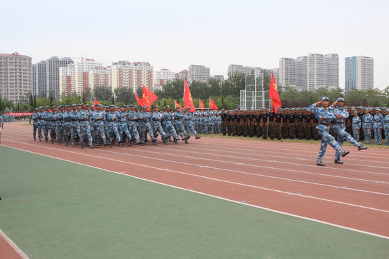 为了展示新生青春风采,检验军训成果。9月12日下午3点,我院2019级全体新生于校运动会场参加滨州学院2019年新生军训汇报演出,我院党总支书记张永胜老师、辅导员宋立军老师、靳雪银老师、纪建茂老师到场指导观看。