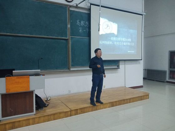 宋立军老师在大会伊始就提出了2018级同学们宿舍卫生差的问题,要求同学们自觉地把宿舍卫生打扫好。紧接着说到了学习问题,宋立军老师强调了英语四级的重要性,督促同学们努力学习,尽快考过英语四级。然后宋立军老师又提到了周末和假期时有学生夜不归宿的现象,表示要杜绝这类现象的发生。最后,宋立军老师用发生在校园里的电信诈骗实例给同学们以警示,打足了预防针。