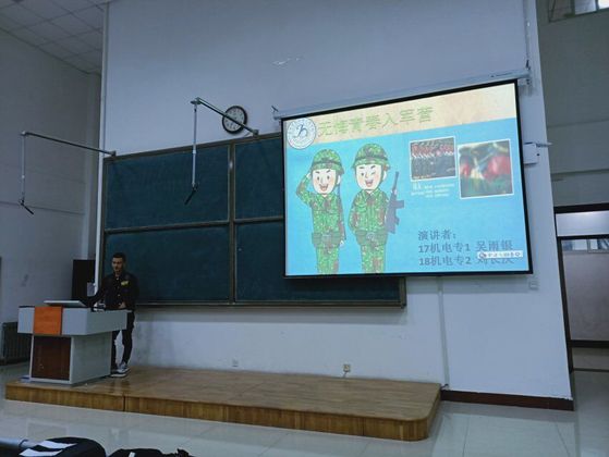 大会伊始,靳雪银老师强调了当代青年人要树立热爱祖国并为之献身的思想,坚持爱党、爱社会主义高度统一。接着,靳雪银老师告知同学们,不仅要正确认识弘扬爱国主义精神,也要继承和发扬中华民族的优秀成果。随后,17级吴雨银同学和18级刘长庆同学进行演讲发言,两位同学深情地讲述了曾经自己有苦有涩有乐的入伍生活。他们表示很幸运自己参加了征兵入伍,因为这次经历让他们懂得了今天的幸福生活来之不易,它是几代人的勤劳付出,几代人的誓死捍卫国家和平的结果。其次,他们发自内心地劝告19级同学们,作为当代的青年要牢记幸福生活都是用革命先辈的热血换来的和祖国的日新月异都是通过劳动人民的双手创造的。最后,靳雪银老师总结发言,并殷切希望19级同学们能够积极习革命斗争精神,培育新的时代精神,增强爱国思想意识,永远把祖国放在心中。