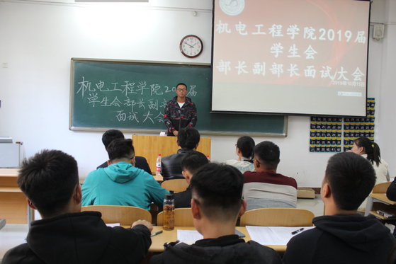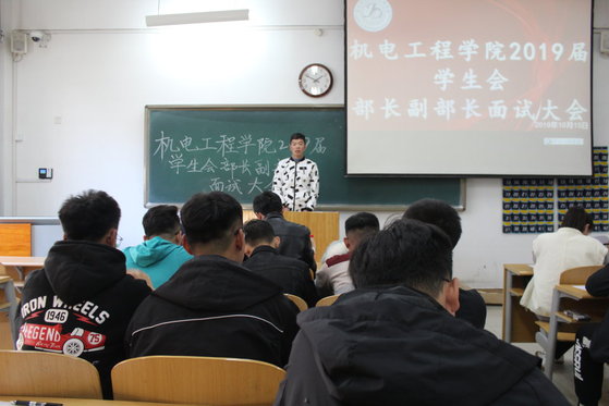 为了加强我院学生会的组织建设,切实加强我院学生会的管理,保障我院学生会工作的顺利进行。10月15日下午2点,机电工程学院于8教109举办2019届学生会部长面试大会。此次大会由宋立军、纪建茂、靳雪银三位辅导员老师、主席团全体成员及2018届各部部长作为评委,2019届学生会部长竞选人参加。