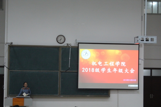 为进一步了解学生的学习生活,总结近段时间的学习状况,为下一步更好的学习工作做出规划。10月20号晚6点半机电工程学院于八教305召开2018级学生年级大会。此次会议由辅导员靳雪银老师主持开展,2018级全体同学参加。