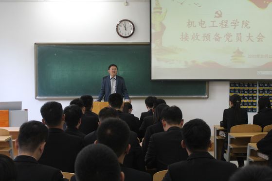 会议由学生党支部书记宋立军主持。会议伊始,全体人员起立奏国歌。大会严格按照接收预备党员的组织程序进行:一是由31位拟预备党员依次上台做简短的发言,汇报考察期思想、学习、工作及生活上的感悟、表现及入党后的目标和期望等情况;二是由其培养联系人对他们的平时表现进行客观评价,说明其这一年考察期思想、学习、工作、生活中的情况,并表达是否建议其接收为预备党员的意见;三是支委会报告审查意见;四是与会党员发表意见,对发展对象能否入党进行充分讨论;五是无记名投票表决;六是通过支部大会决议。大会同意接收张义壮、刘庆等31名同志为中共预备党员。