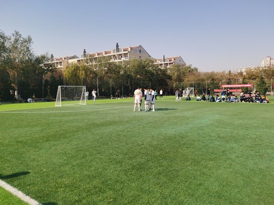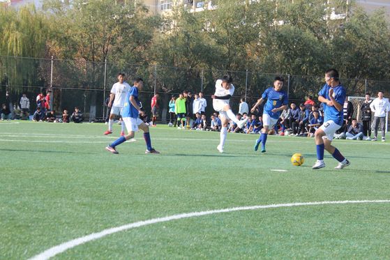 绿茵点亮梦想,激情舞动青春。寒冷的天气挡不住大家的热情,足球比赛开球,主裁判和巡边员带领双方对员入场、向替补球员致意,然后双方队长在主裁判的主持下挑边儿,挑对的一方有权选择先开球、让对方开球和球场的方位三选一。然后双方队长、主裁判、巡边员相互握手,双方队员各回本方半场加油助威。最后由开球方两名队员进入中圈执行开球,主裁判鸣哨开球,刚开始,建筑工程学院先得了一分,大家顿时感到有点紧张。还好,功夫不负有心人,学院紧接着追上了一球。随后比赛进去焦灼阶段,最终,机电工程学院以2:1脱颖而出,获得本次比赛的冠军。此时此刻,掌声,欢呼声布满整个足球场,替补队员跑到10号球员面前,将其一次又一次地高高举起。
