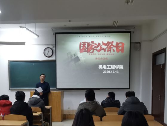为了激发同学们强烈爱国之情,宣扬爱国主义精神;教育同学们勿忘国耻、铭记历史,明确人生方向,发奋图强。2020年12月13日晚7点,学院于八教组织开展了国家公祭日主题班会。学院全体同学参加。