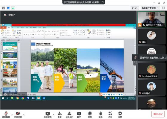 根据疫情防控的要求,招聘会以线上腾讯会议的形式召开。三家招聘单位的人力资源部负责人通过幻灯片宣讲,对公司发展定位进行充分介绍。各企业招聘人员还向同学们介绍了关于公司的一些规章制度、福利待遇、企业文化等内容,并解答了同学们的疑问。本轮线上招聘会累计提供岗位40余个,初步达成就业意向十余人。