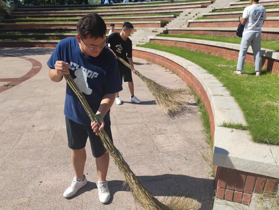 下午2:30,参加活动的志愿者们携带卫生工具,早早地到达了指定位置集合,随后进行分工,积极有序地开展一系列工作。机电工程学院团总支书记张丛丛以身作则,主动带头,拿起簸箕、扫把等工具,开展卫生清洁工作。在志愿服务活动中,大家分工明确,积极主动,互相配合,对水上广场的角角落落都进行了认真清理。烈日炎炎,即使已经汗流浃背,但志愿者们的情绪依然高涨,秉持不怕苦、不怕累的精神,以严谨的工作态度,认真清理道路两旁的垃圾,充分发挥了党员和先进团员的先锋模范作用,展现了奉献精神。