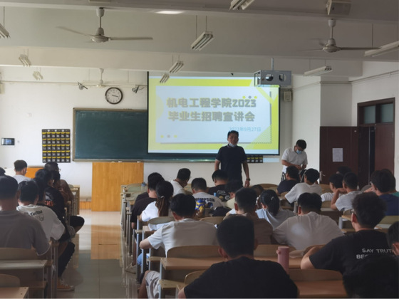 招聘会伊始,刘云龙向到场的企业工作人员老师和同学们表示热烈欢迎。随后,企业的相关工作人员借助视频和幻灯片展示,向同学们介绍了公司的基本情况使同学们对企业有了初步的了解。接着又同学们介绍了公司的规章制度、福利待遇、企业文化等。提问环节中,同学们积极踊跃地提出相关问题并得到了企业工作人员的详细解答。招聘会现场气氛热烈,同学们对自己的就业谋划有了更加清晰和明确的认知。会议最后,招聘方向同学们介绍了企业今年的招聘岗位和应聘要求,并真诚地希望同学们能够来到企业工作,此次招聘会圆满结束。