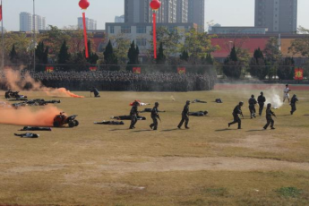 军训汇演在主持人的致辞中拉开了序幕,主持人首先依次介绍了到场的学校领导。紧接着,全体起立,伴随着庄严的升国旗仪式,汇报表演正式开始。2022级全体新生身着军训服,迈着铿锵有力的步伐,喊着嘹亮震天的口号,交出了大学第一课的完美答卷。整齐划一的分列式优秀方队,英姿飒爽的擒敌拳方队、匕首操方队和刺杀操方队,还有让人热血沸腾的模拟射击、综合战术演练,战地医疗救护依次进行了汇报表演。在表演中,各项目队员身姿挺拔、步履坚定、斗志昂扬、口号嘹亮,展现了2022级新同学的蓬勃朝气和无限活力。随着表演项目的一一进行,现场气氛逐渐热烈,掌声喝彩声不绝于耳。最后,主持人宣布了军训汇演荣誉名单并进行颁奖,我院获得优秀成绩。