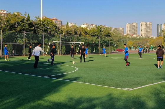 本次比赛分为两小队,各小队内部分好位置、商量战术,力求能够碾压对手。比赛还未开始,各小队就已经神经紧绷,摩拳擦掌,紧张的氛围逐渐蔓延开。随着裁判一声令下,比赛正式拉开帷幕,听到口令的小队队员瞬间如离弦的箭一般,冲到了球前。经过一系列激烈的争夺,球权落到其中一个小队身上。另一个小队的队员也不甘示弱,不断的去骚扰对方。队员们一系列的传球运球、射门守门,将他们所学展现的淋漓尽致。比赛失误时,他们一起加油打气;帅气进球时,他们一起欢呼鼓励。最后,在裁判的结束哨声中,以其中一个小队的胜利圆满落幕。