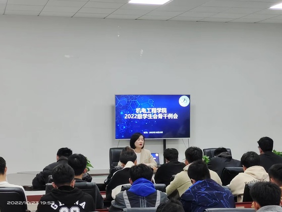 为端正新换届学生会干部的工作态度,讨论并解决往届学生会工作产生的问题,机电工程学院学生科科长张丛丛主持召开了2022级学生组织骨干例会,各部门正副部长参与会议。