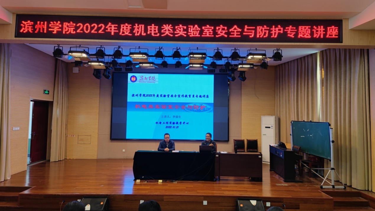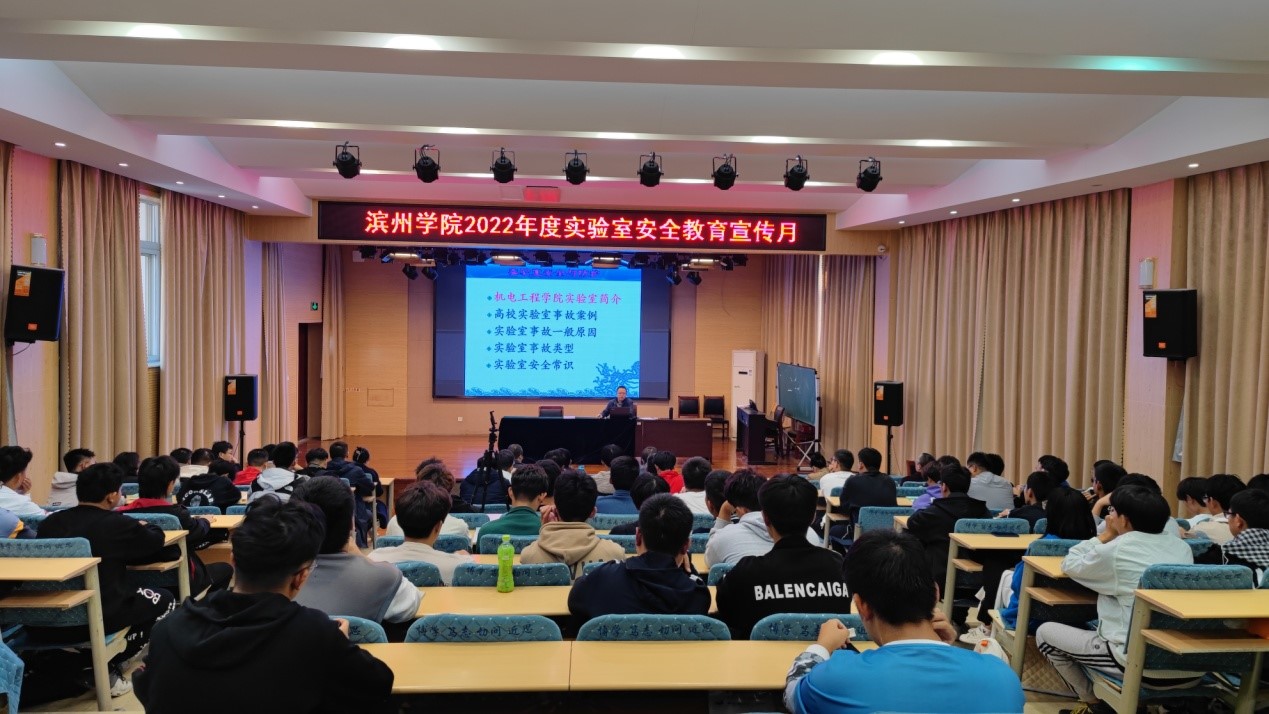 为全面提升我校师生实验室安全责任意识,弘扬实验室安全文化,提高应对突发事件的应急处置能力,有效防范实验室安全事故,根据滨州学院2022年度实验室安全教育宣传月活动安排,2022年10月21日下午2点在4教308举行了《机电类实验室安全知识与防护》讲座,会议由教务处副处长李建庆主持,教务处实验室管理科、各理工科类实验室主任及实验室管理人员、2022级机械设计制造及其自动化专业学生参加了安全讲座。