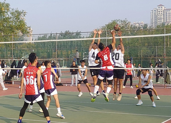 上午8:30,比赛准时开始。我方队员士气高涨,发球精准,接球稳重,扣球有力,队员们配合默契,与对方队伍实力不相上下, “加油!加油!”的助威声铿锵有力,此起彼伏。随着后期比赛愈发焦灼,我方队员体力有些下降,接球有些失误,对方趁势而上接连得分,我方队员沉着冷静,将比分慢慢追平,每一次精彩的扣球与得分都赢得了现场观众的阵阵欢呼,最后对方队伍以2:1的比分胜出。虽然我院队员与胜利擦肩而过,但比赛过程中队员们团结一心,充分发挥了自己精湛的个人技术与熟练地战术配合能力,比赛所获得的友情是永远无法磨灭的。
