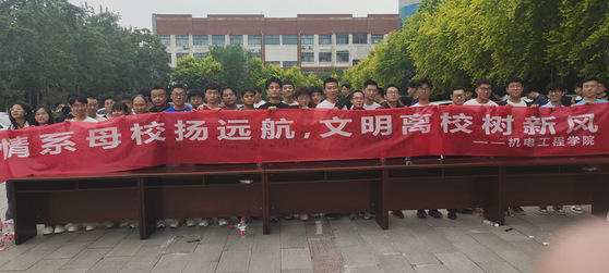 绿意染浓了枝头,收获装满了行囊,悄然而至的盛夏昭示着离别时刻在即。为让2023届毕业生文明离校,营造文明安全、温馨和谐的校园氛围,5月30日,机电工程学院开展“情系母校扬远航,文明离校树新风”毕业生签字活动,该活动由毕业班辅导员韩娇娇牵头组织,2023届全体毕业生参加。