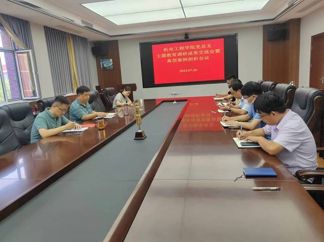 7月26日,机电召开主题教育调研成果交流暨典型案例剖析会,学院领导班子成员参加会议,学校党委行政办公室副主任张天华到会指导。会议由党总支书记王丕琢主持。