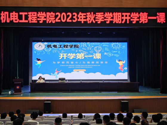 夏日褪去,时至早秋;向阳花开,等你归来。机电工程学院2023年秋季学期开学第一课在8月20日于千人礼堂成功举行。会议由机电工程学院学生科科长张丛丛主持,参加会议的有2021级和2022级的学生。