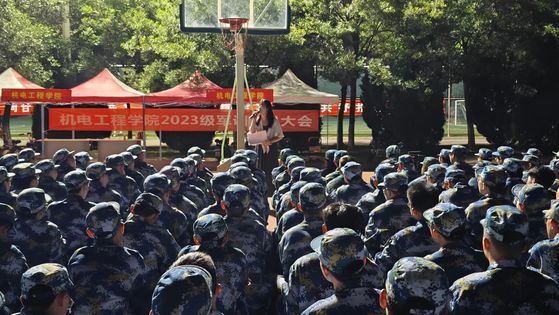 风华正茂恰少年,热血迷彩正青春。为了迎接即将到来的军训生活,给新生们贯彻服从命令,听从指挥,刻苦训练的思想,提升新生们国防意识和军事素养。9月2日晚,机电工程学院于篮球场召开2023级军训动员大会,本次会议由学生科科长张丛丛,2023级辅导员韩娇娇主持,所有2023级新生参加。