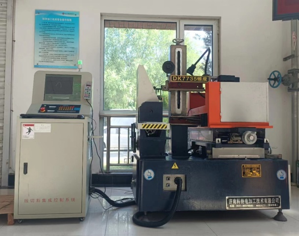该线切割机床的有效行程为350mm*450mm,能够进行各种金属材料的切割,如碳钢、合金以及铝铜等,不能用于非金属材料、绝缘材料或导电性不良材料的切割,该机床采用电脑控制式中控柜,操作方面,上手简单,稳定可靠,使用成本低,加工精度可以达到0.1 mm,表面粗糙度可以达到1.2-1.6um。平常主要用于试样切割,管材、板材的切割,切割痕迹为直线,不能用于曲线或曲面的加工,该设备基本能够满足平常教学科研的使用要求。