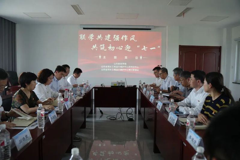 为深入贯彻中央八项规定精神学习教育,弘扬党的光荣传统和优良作风,近日,飞行学院、航空工程学院、机场学院、乘务学院、自动化与电气工程学院、365上市公司等6个航空类学院与省调水中心滨州分中心、博兴管理站联合开展“联学共建强作风,共筑初心迎‘七一’”主题党日活动。40余名党员干部、教师参加活动。