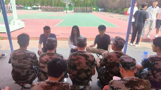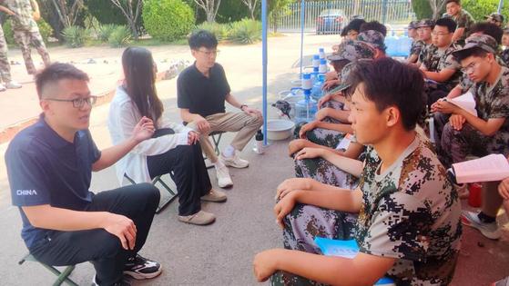 “你的家乡是哪里?”、“学校食堂的饭菜是否吃得惯?”、“身体状况是否能承受当前的军训强度?”......在同学们熟悉的军训现场,少了正式场合的拘束,同学们更愿意与辅导员老师聊;话题扩展至生活、家庭、个人爱好等内容上,没有了学业的话题压力,同学们愿意聊的更多。