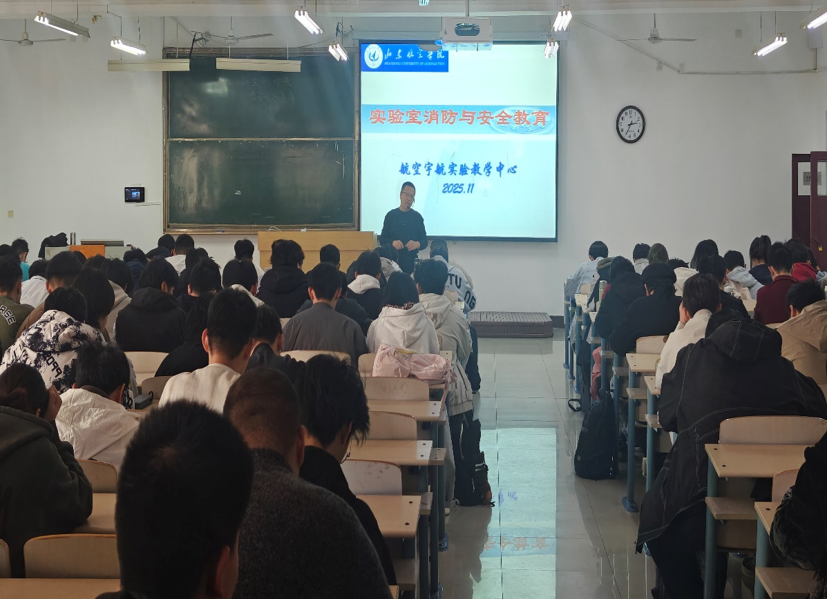 为进一步增强学生的实验室安全意识,提升安全防范与应急处置能力,切实保障实验教学工作的安全有序运行,2025年11月14日下午,航空宇航实验教学中心面向2024级机械设计制造及其自动化、飞行器制造工程、飞行器设计与工程等专业学生组织开展了一场内容丰富、形式多样的实验室安全教育活动。本次活动通过案例警示、知识讲解、制度解读与实地参观相结合的方式,为学生们上了一堂生动而深刻的“安全第一课”。